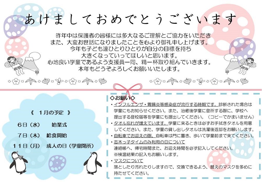 志木第三学童保育クラブおたより1月号