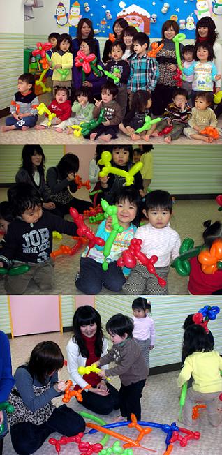 お知らせ一覧 楽しいバルーンアート! 今日は日本ウェルネス歯科衛生専門学校のお姉さんたちが来てくれました。風船を使ってかわいいワンワンやお花をたくさん作ってくれて、子どもたちも大喜びでした。 < 前の記事一覧へ戻る次の記事 >