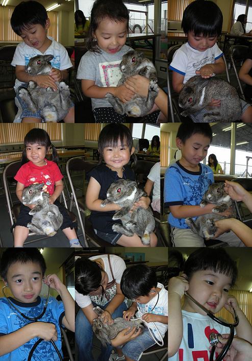 お知らせ一覧 7月のふれあい動物① 今月のペットふれあい教室です。今回は学生さん達が動物クイズを出してくれたり、聴診器でうさぎさんの心臓の音を聞かせてくりました。みんな興味しんしん(^o^)丿でも・・・2才児さんにはちょっと難しかったかな(^_^;) < 前の記事一覧へ戻る次の記事 >