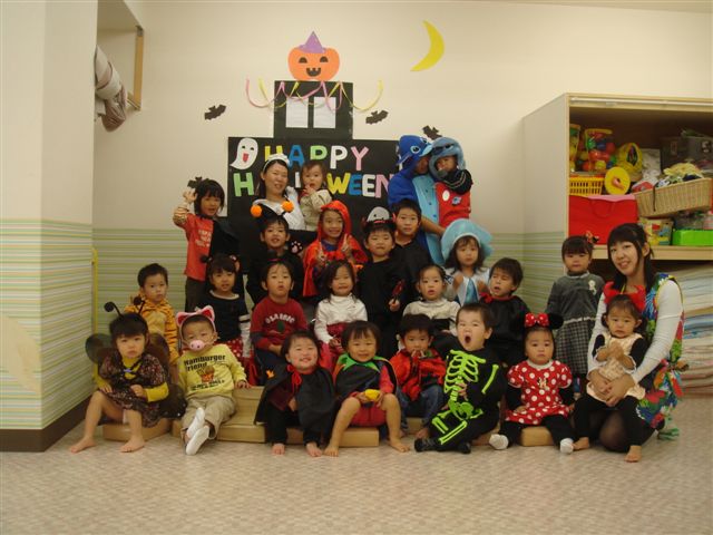 今日はハロウィン!子ども達がそれぞれの衣装で登園。ゲームをしたりダンスを踊ったりしました。