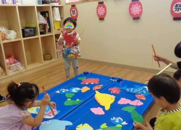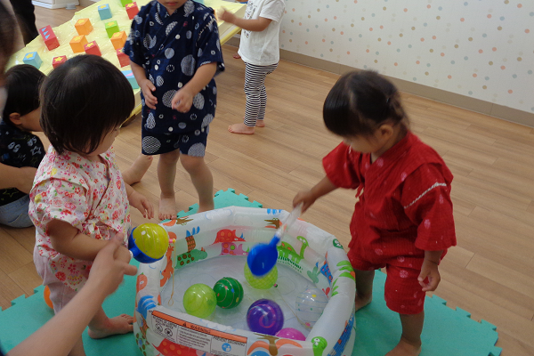 あまりに暑い陽ざしの日は、保育室で遊ぼうと