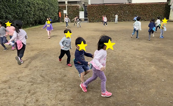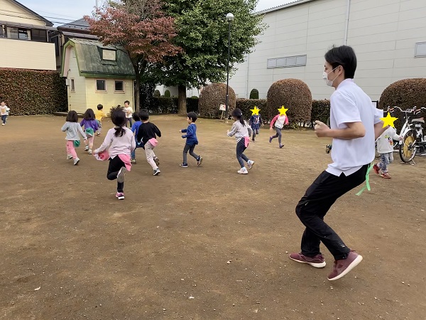 先生やお友だちのしっぽをとるために、一生懸命追いかけたり、