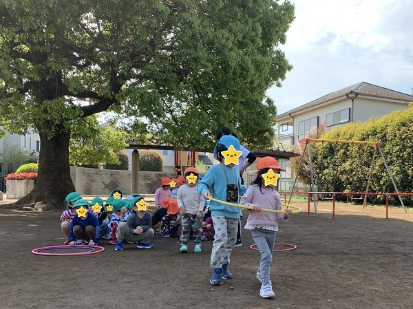 お知らせ一覧 ウェルネス保育園 志木(埼玉県) 毎週水曜日は近くの公園で、3~5歳児クラスが “集まれ元気っ子”で身体を動かしています。 この日は体操をした後にフラフープを使って電車リレーをしました。 2人1組のペアを作り、2グループに分かれていざ勝負! 2人で力を合わせて負けないように頑張っていました。 見ている子どもたちも「頑張れ~!」と 精一杯応援している姿も見受けられました。 みんな楽しそうに参加していました。 これからも子どもたちの成長に合わせて 様々な遊びに挑戦させてあげたいと思います。 < 前の記事一覧へ戻る次の記事 >