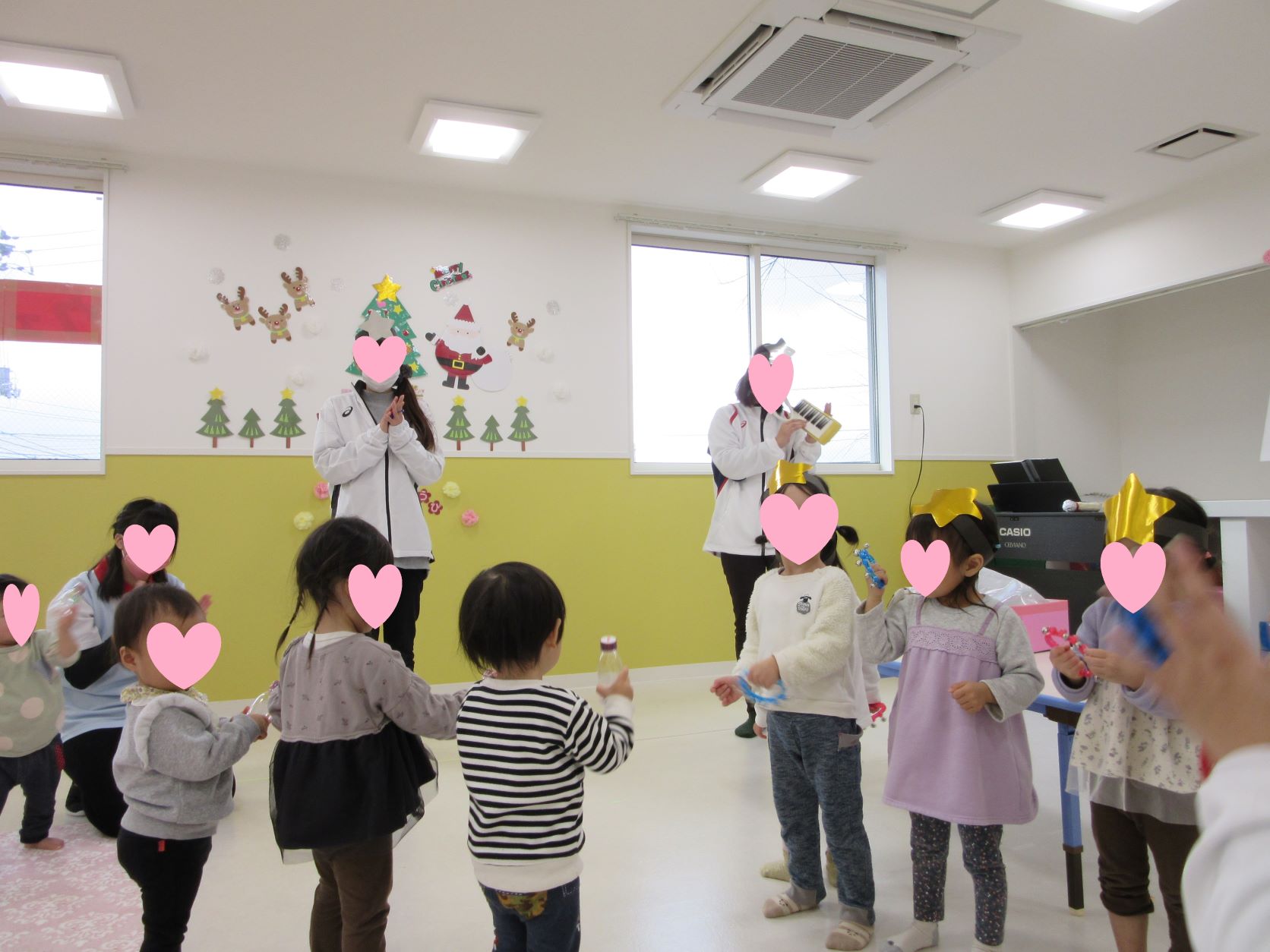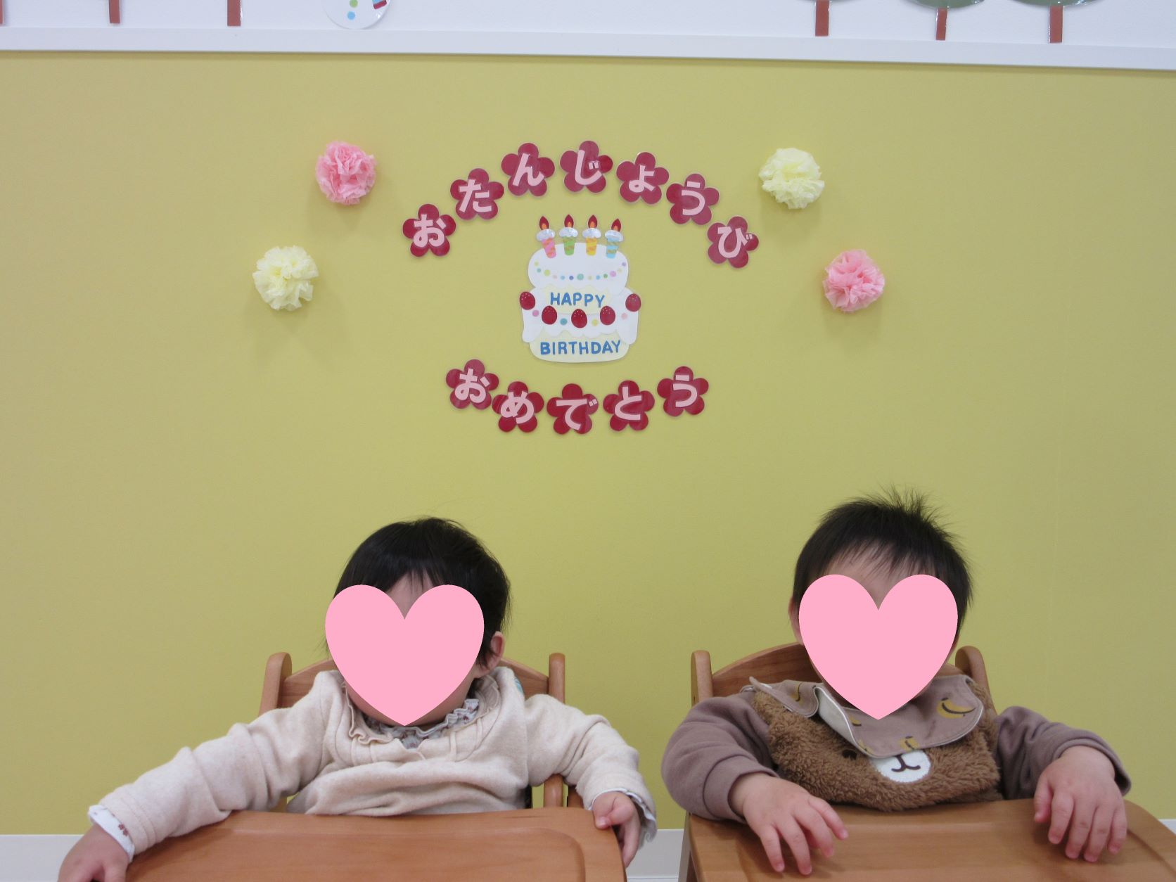 お知らせ一覧 ウェルネス保育園 江刺(岩手県) ⛄12月のお誕生会⛄ 毎月15日は楽しいお誕生会の日です。 今月は、歩いたり手を挙げてお返事が出来るようになってきた 1歳のお誕生日を迎える2名が主役です。 お誕生日おめでとう! これからも先生やお友達といっぱい遊びましょうね。 サンタさんが動物達にプレゼントを持って来るという内容の 『パネルシアター』をみんなで見て楽しみました。 真剣な姿で見入っていますね。 最後にみんなで鈴やマラカスなどの楽器を奏でて、お祝いをしました。 < 前の記事一覧へ戻る次の記事 >