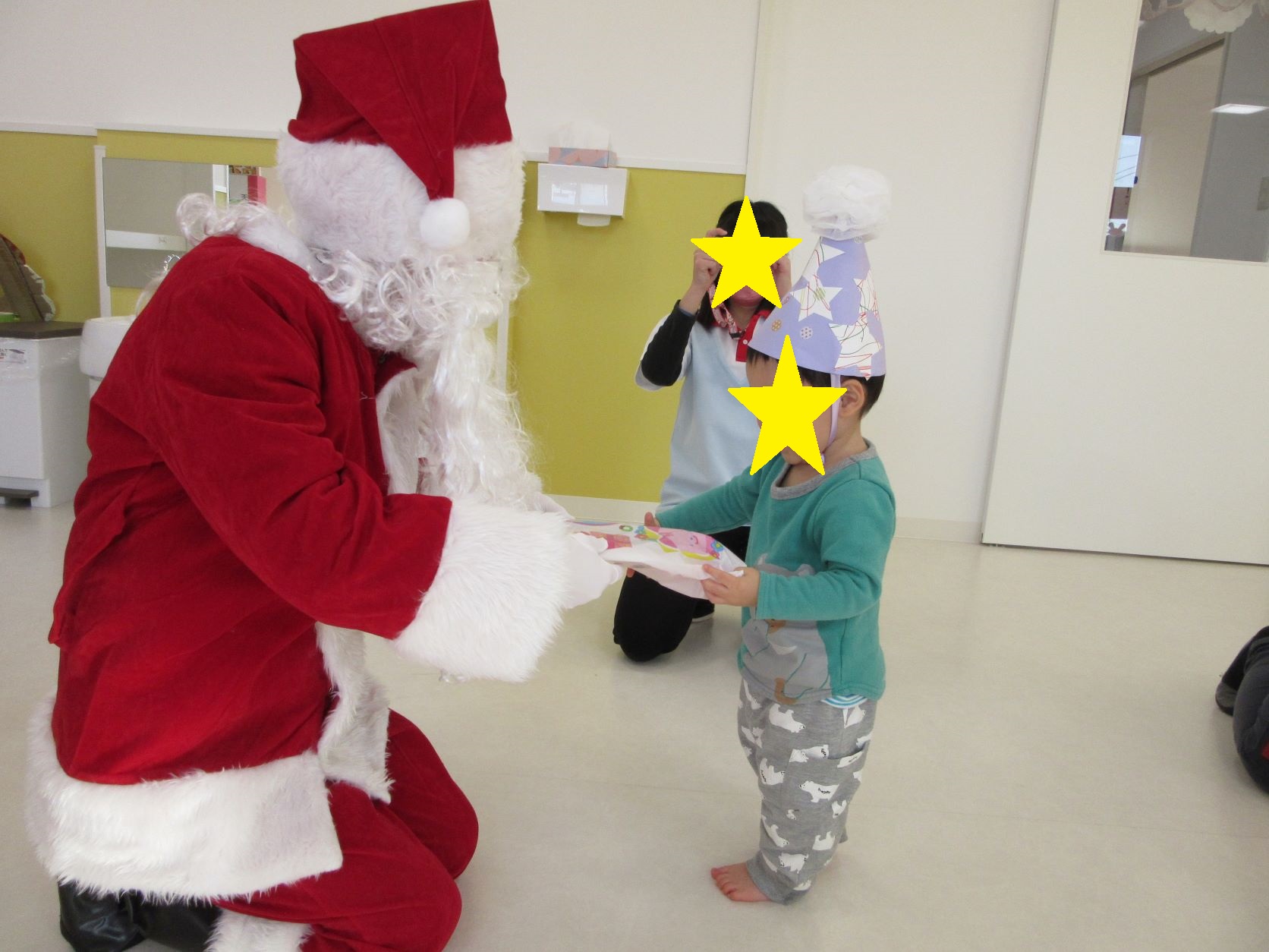 サンタさんから一人ひとり手渡しでプレゼントを貰いました。
