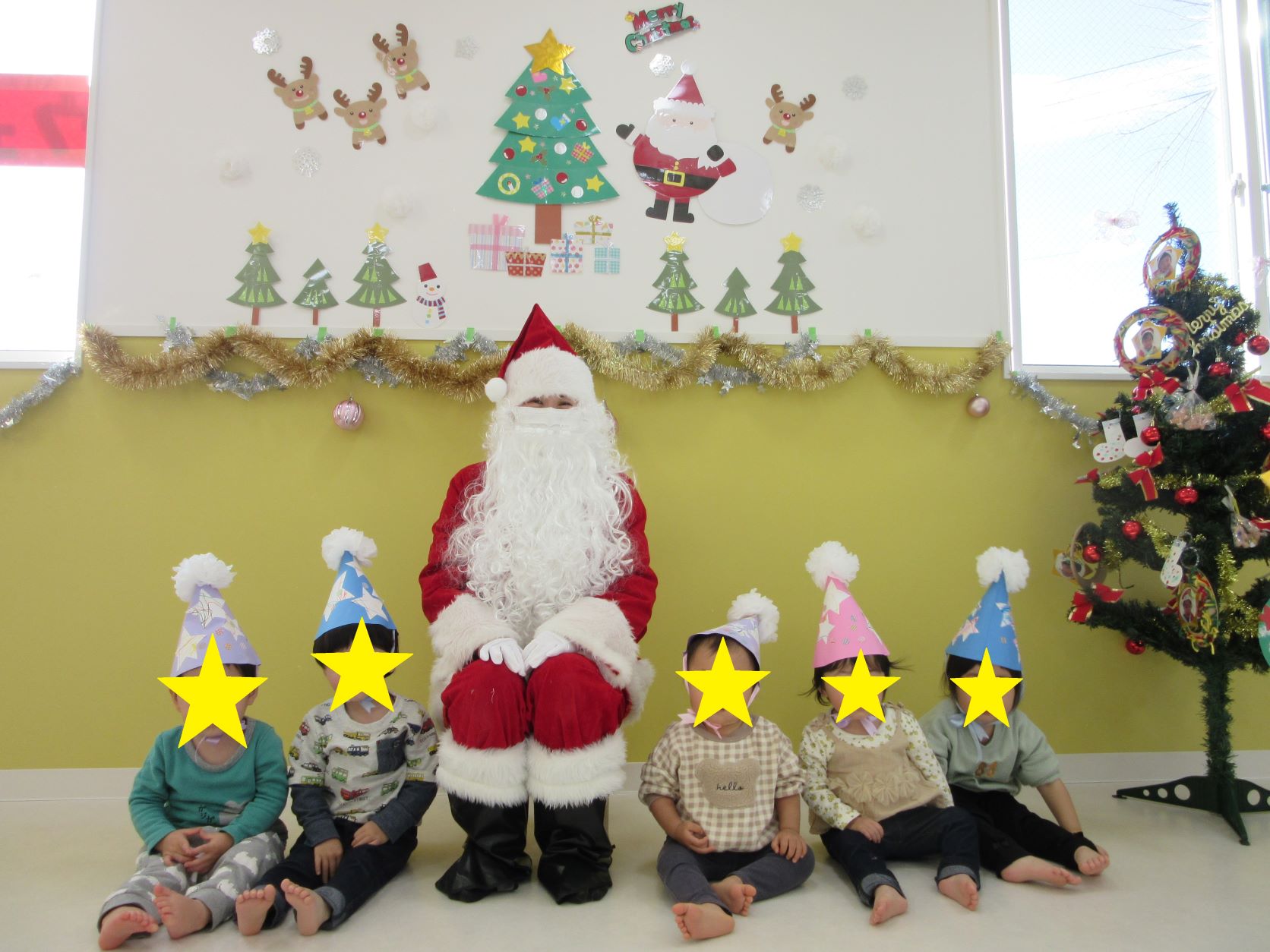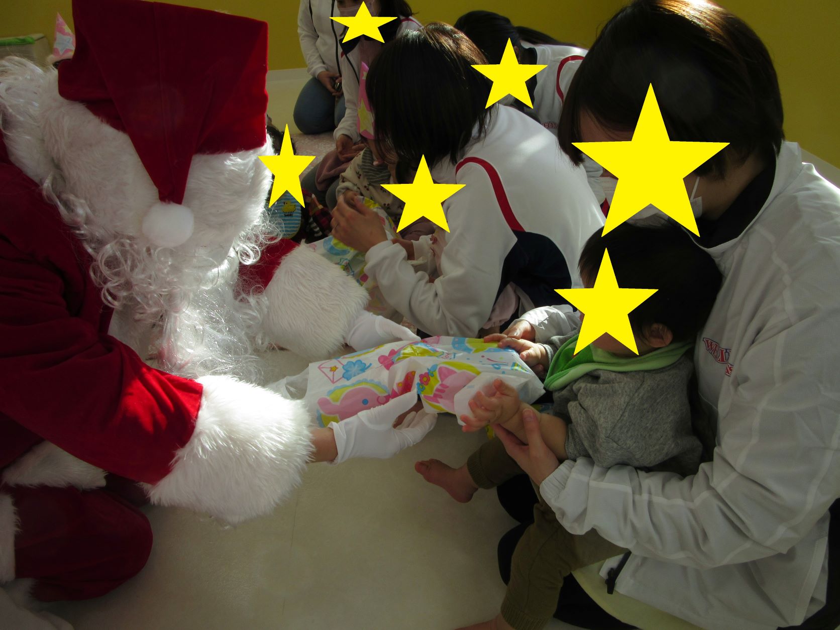 ウェルネス保育園江刺にもサンタクロースがやってきてました!!サンタクロースに逢えて、笑顔を見せる子ども達。怖くて泣いてしまう様子はほとんど見られませんでしたよ。