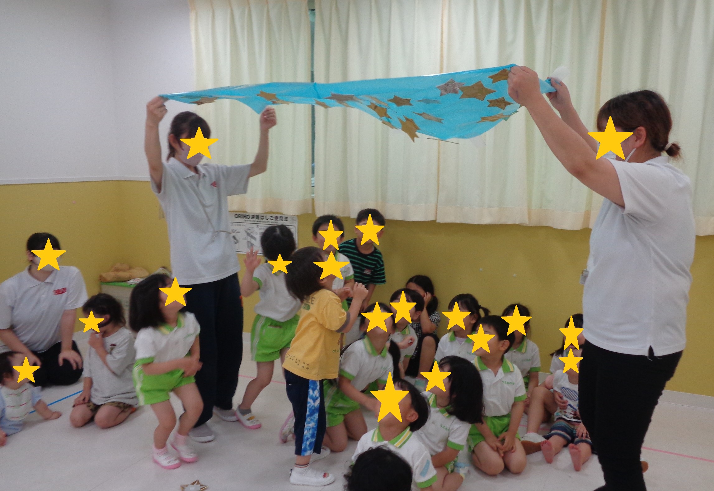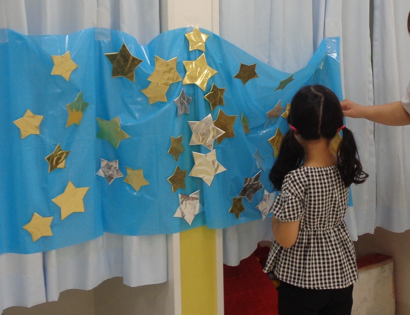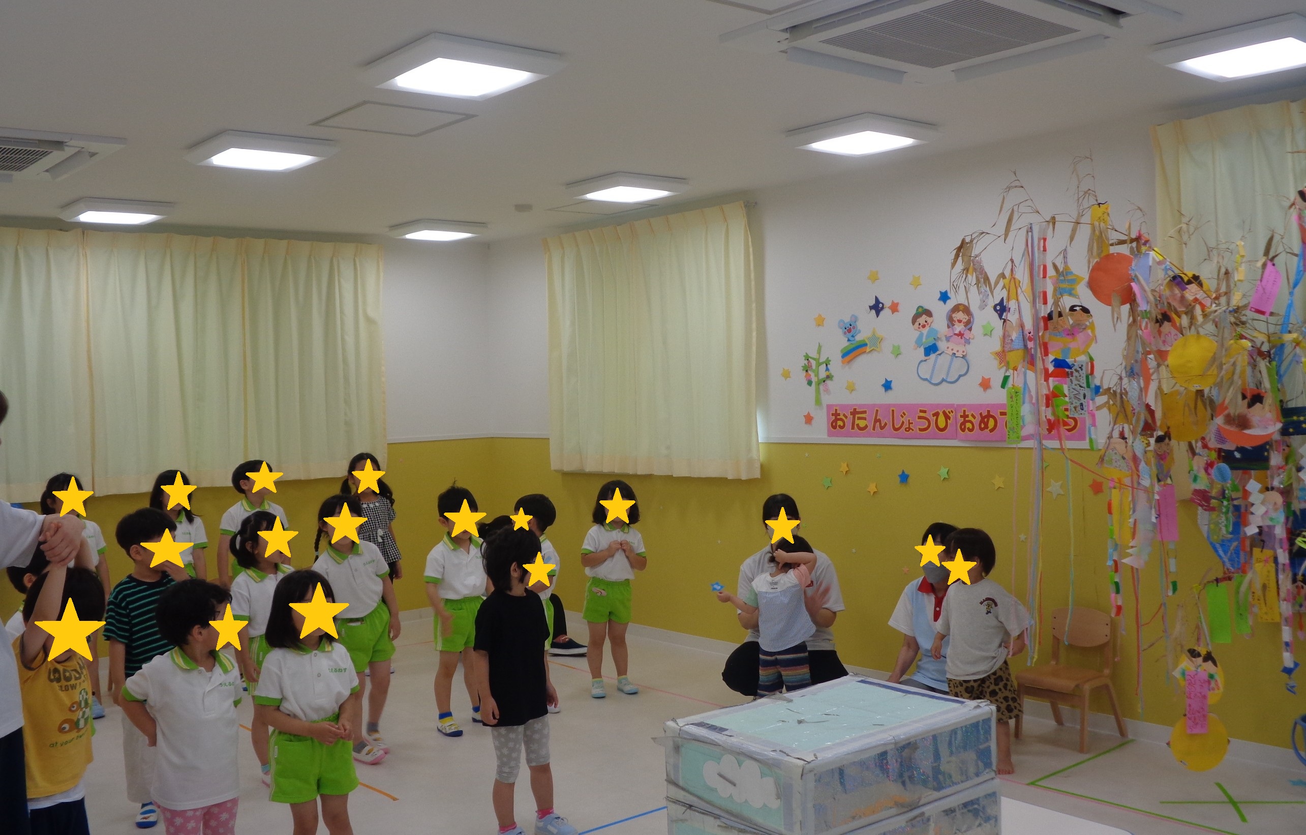 お知らせ一覧 ウェルネス保育園江刺 (岩手県) ウェルネス保育園江刺では、先日七夕お誕生会を行いました。 自分たちで作った七夕飾りや短冊を見ながら、たなばたさまの歌をうたい、ホールいっぱいに子どもたちの歌声が響き渡りました。 七夕のお話を聞き、最後に園児全員でゲーム「お星さまをつかまえよう」をして楽しみました。 2つのチームにわかれて、お星さまをつかまえて天の川を作りました。 それぞれ願いを込めて、お星さまを貼りました。 すてきな天の川が完成しました。 みんなの願いが叶いますように! < 前の記事一覧へ戻る次の記事 >